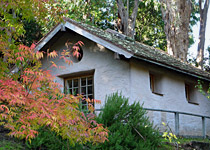 Nearby and slightly above the south west gardens sits the yurt, an enclosed circular structure with a redwood deck, which accommodates small discussion and prayer groups as needed.